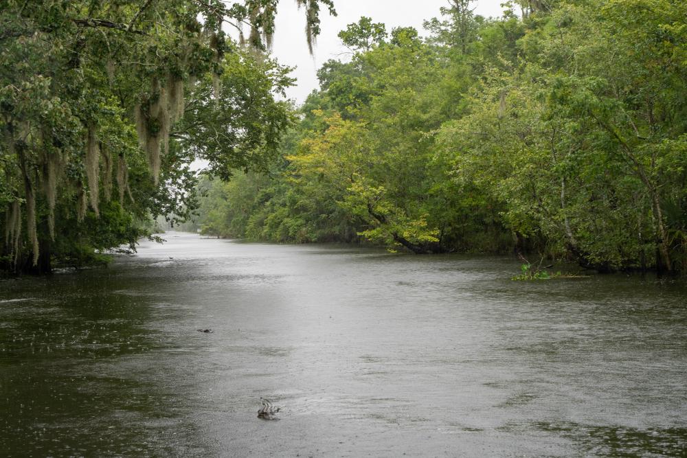 Pictured: The view on the water on a Lousiana swamp river. The perspectie is looking down river from a boat. The image was obtained from Unsplash at https://unsplash.com/photos/yxkH3p6WuT0
